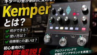 ギター機材Kemper で何ができる?初心者でも分かる使い方・活用方法を徹底解説 Kemperとは何ができる機材なのかを初心者向けに分かりやすく解説。アンプ再現の仕組み・使い方・他のマルチエフェクターとの違いまで網羅。ライブ・宅録にも使える理由がこの記事で理解できます。 2026.04.03ギター機材