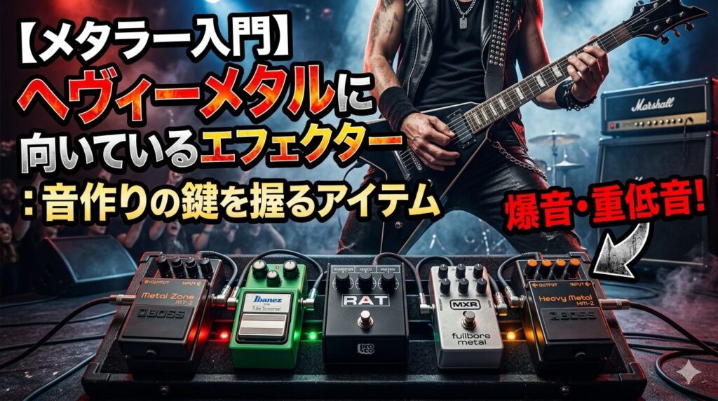 このように、ヘヴィーメタルではエフェクターを巧妙に使うことで、サウンドに個性を加え、音楽的な深みを持たせることができます。どのエフェクターが自分のスタイルに合うか、ぜひ試してみてください!